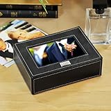 Our Photo Keepsake Box is just the right balance of casual style and contemporary elegance. Fashioned in a black leatherette finish with white topstitching, this keepsake box is gently lined with black velvet and easily holds 4x6 photos or your most treasured keepsakes. Sure to match any decor, this photo box is an attractive way to accent any room Details: Size: Photo box measures 6 3 4" by 5 1 4" by 2 1 4 inches with a 4 3 8" by 2 5 8 inches outer photo slot. Materials: Black leatherette finis