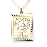 Gold-plated Sterling Silver Postage Stamp Wedding Hearts Necklace (14kt gold-plated, 2)