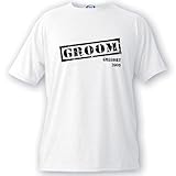 Wedding Favor - Bridal Shower Gift - Baby Shower Keepsake: His title is proudly stamped across his chest with our personalized t-shirts. Available for all men in the wedding party, each durable micro-fiber and spun poly tee features his first name and your wedding year. Include the fathers of the bride and groom, and even the ring bearer Personalize it with Name and Year.